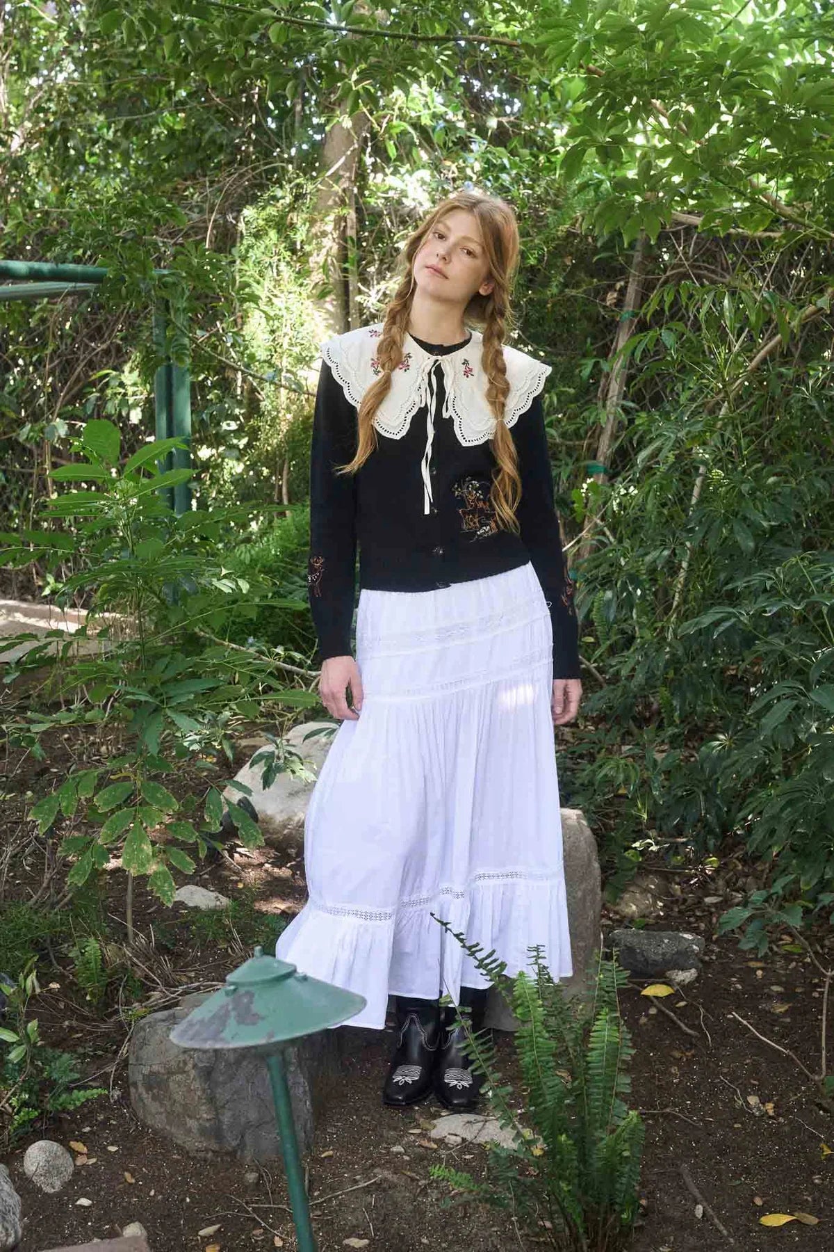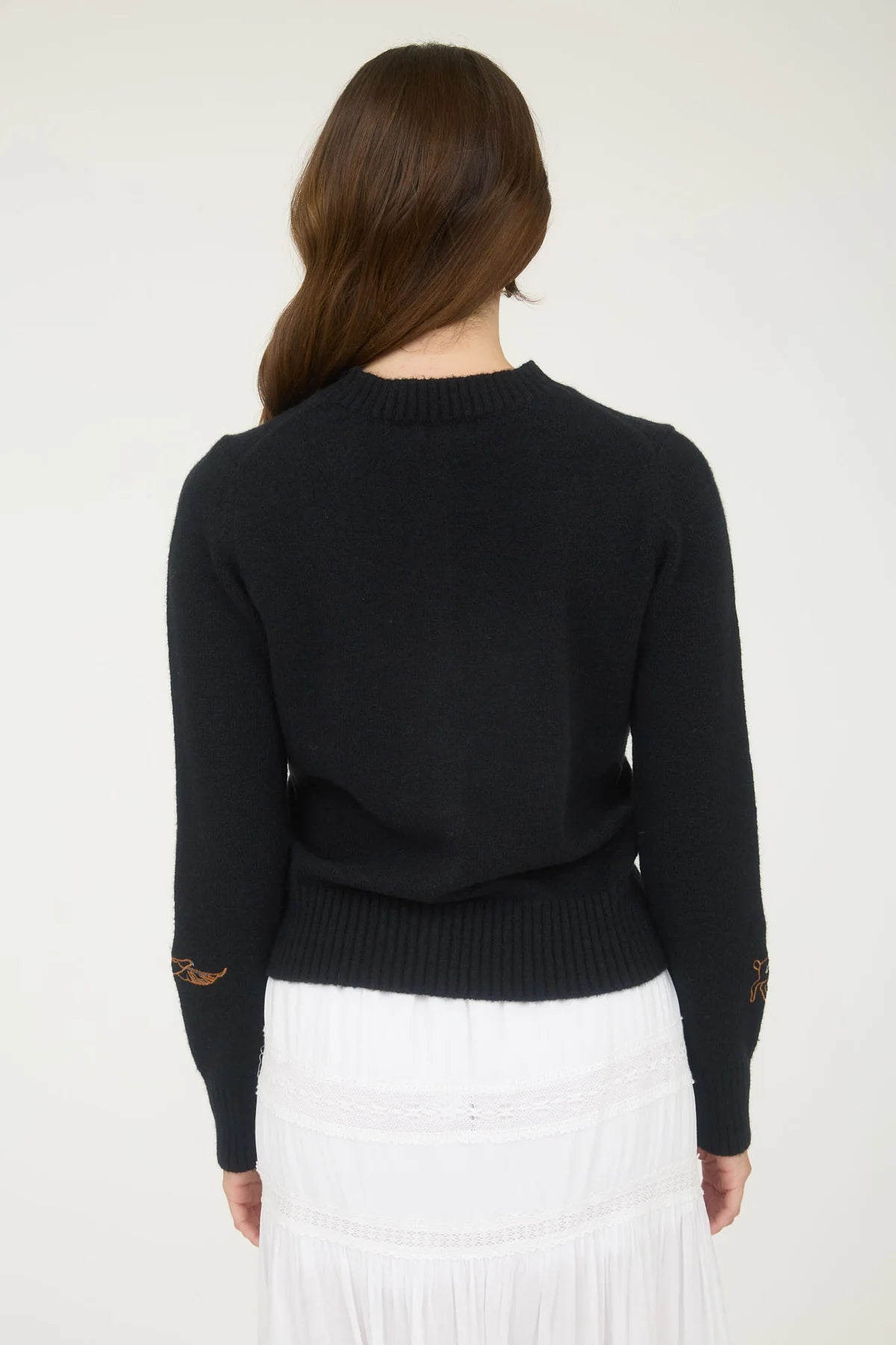 Round neckline, long sleeves button-down, ribbed hem detail animal embroidery cardigan