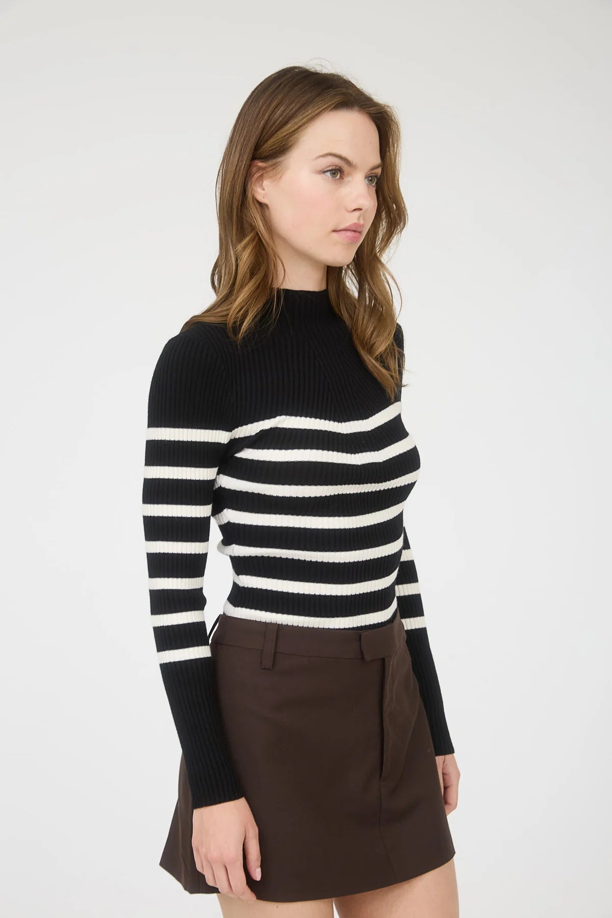 Mock neckline, long sleeves sweater knit pattern half stripe pattern, fitted knit pullover sweater